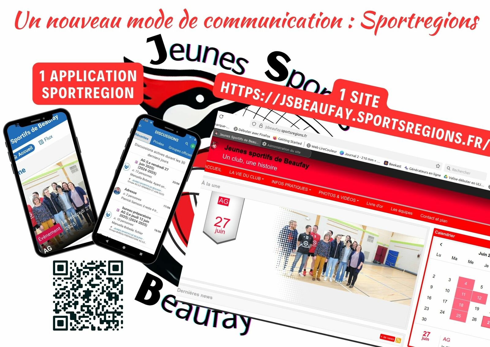 Pour notre comminication (déplacement compétition, présence entrainement , match...) nous utilisons sports regions. Possibilité de l'utiliser sur ordinateur et sur téléphone avec les mêmes identifiants.